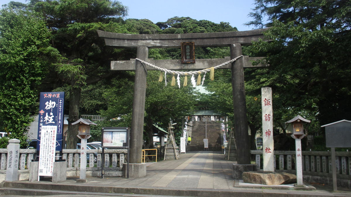 2020-08-14 新型コロナウイルス撲滅祈願! 「新型コロナウイルス」撲滅を願い大津諏訪神社参拝。 平成26年御柱。 諏訪市後山山中で伐採された樹齢180年樅木。 「地球環境保全」の為、「生活・仕事改善」に努めましょう。