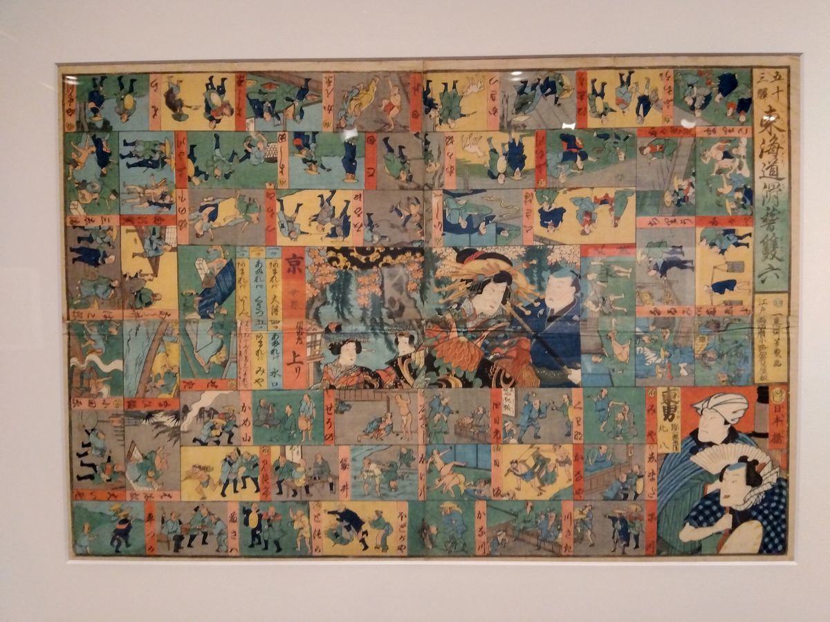 江戸っ子にとって、色鮮やかな双六は遊ぶだけでなく、鑑賞用としても好まれました。