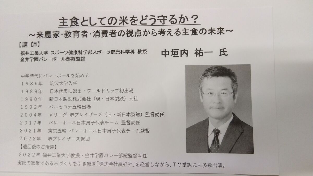 2025-10-09 浜銀総合研究所10月講演会開催 10月8日(水)県民共済みらいホールにて、浜銀総合研究所月例講演会開催。 講師は、中垣内祐一氏 スポーツマンシップを発揮し、実家の家業である米づくりを引き継ぎ、37ヘクタール耕作。 「株式会社 農好社」を経営。体験を通し、貴重なお話をお聴きしました。 米作りは、国民一人々が、自給自足を考え、農業従事者の高齢化、中間耕作地及び耕作地放棄、米価、多額な設備投資等考えてゆかなければならない。 日本の「食文化」継続維持してゆくには、一人々が真剣に考え、実行してゆかなければならないと思います。